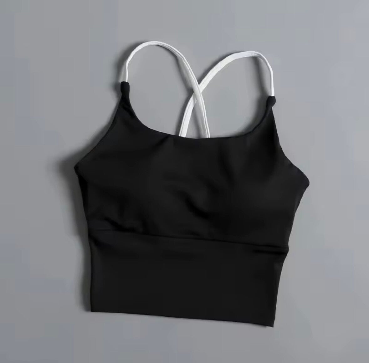 Top Carla is een zachte, iets langere top (net boven de navel). De top heeft dunne racerback crossover bandjes en niet uitneembare pads.